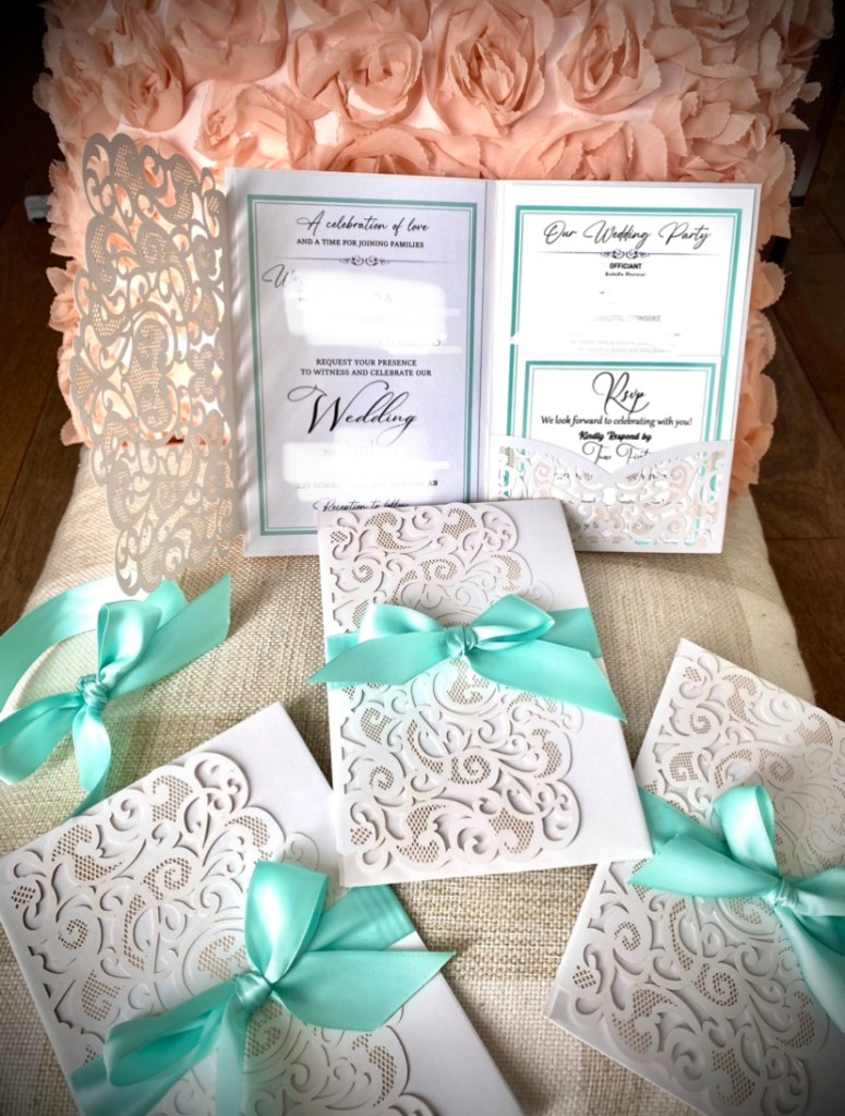 Minimum 50 pcs, Includes layouting, Main Page, Wedding Entourage Page, RSVP Card and envelope.